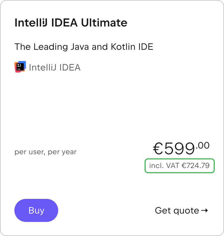 Dies ist je nach Region und den örtlichen Vorschriften unterschiedlich. Wenn sie enthalten sind, wird Ihnen der genaue Betrag im JetBrains-Store angezeigt: