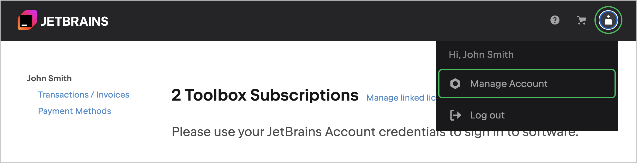 - In the top-right corner of the page, click on the account icon and select Manage Account.