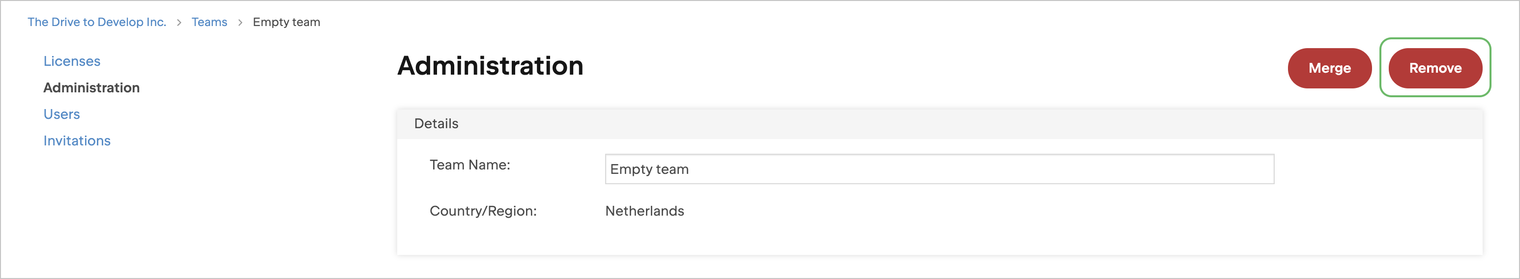 - Assurez-vous que l’équipe est vide. Si ce n’est pas le cas, transférez toutes les licences restantes à une autre équipe.