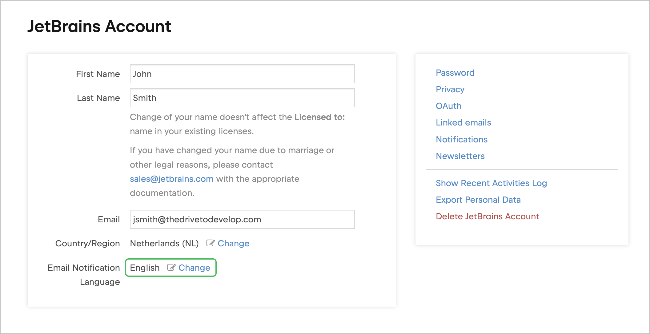 开始以您喜欢的语言接收 JetBrains Account 通知: