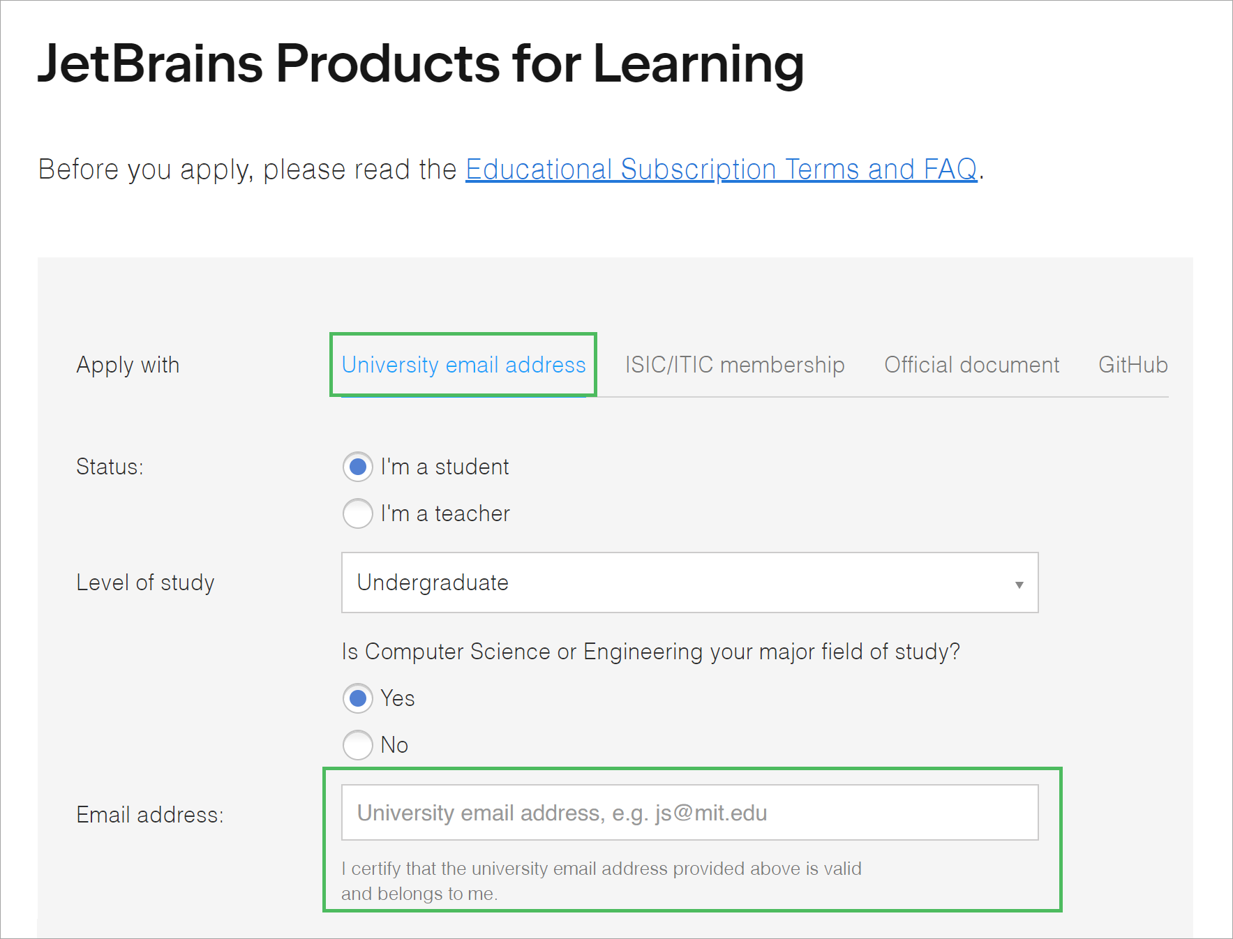 如果您有 GitHub Student Developer Pack,可以使用 Authorize with GitHub(透過 GitHub 授權)選項取得授權,具體如下所示: